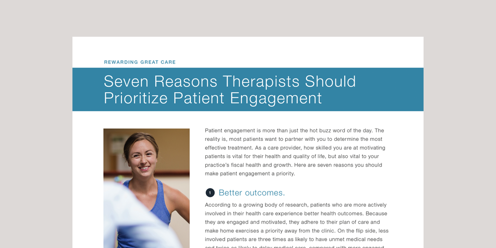 Physical therapy providers possess an incredible value to the healthcare system. However, in order to maximize their value, they must stay ahead of the shifting imperatives in health care. They must pay attention to not only the imperatives imposed by payers and federal regulations, but — just as importantly — those imposed by the pervasive consumerization of the modern patient. When providers begin to embrace reform for value, everyone wins. Patient engagement is a great place to start.