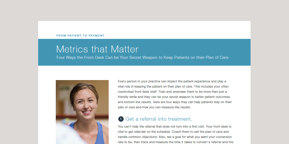 Looking for more? Download our tip sheet to find out how the front desk can be your secret weapon in keeping your patients on their plan of care.